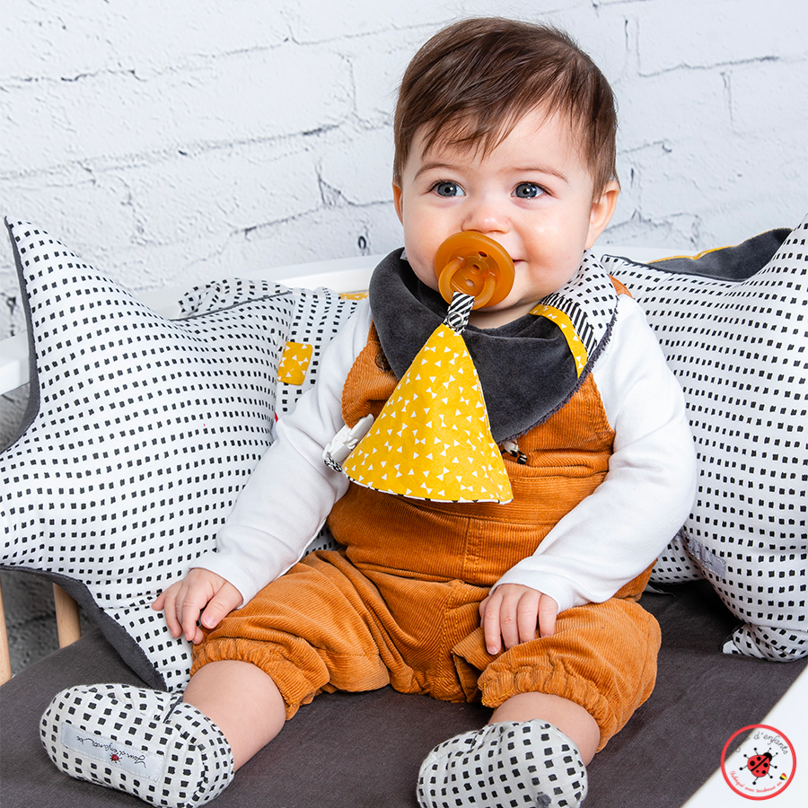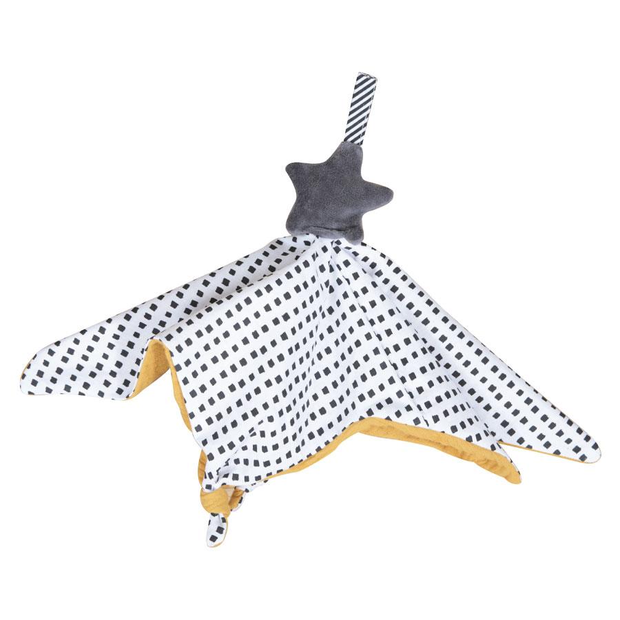 Ce doudou en tétra et coton imprimé est l’accessoire indispensable pour votre bébé, afin de le rassurer et l’aider à passer ses nuits.